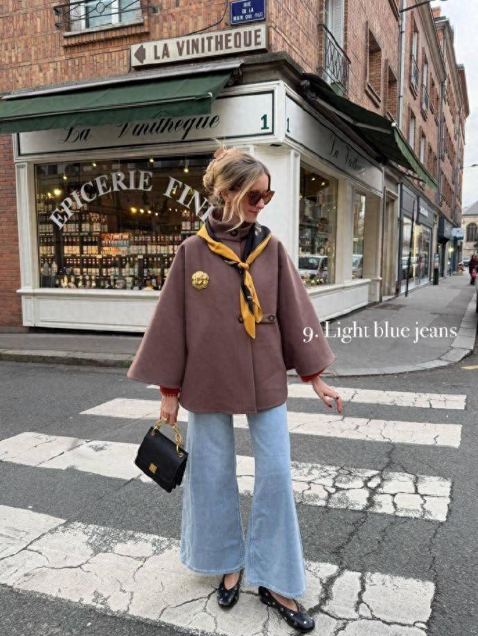 今天T爷给大家介绍的是来自法国ins时尚博主Jeanne Andreaa,始终是通勤风格的标杆式存在,她的穿搭从不是浮夸的设计堆砌,而是用恰到好处的廓形与色彩,把秋冬的厚重感转化为轻盈的优雅。她的春日穿搭合集里,第一条造型便是以丝巾点睛,软糯的棕褐色廓形外套搭配浅蓝牛仔裤,颈间的黄调丝巾打破沉闷,黑色链条小包点缀细节,完美诠释了 “配饰是法式灵魂” 的真谛,每一处细节都透着不刻意的精致。