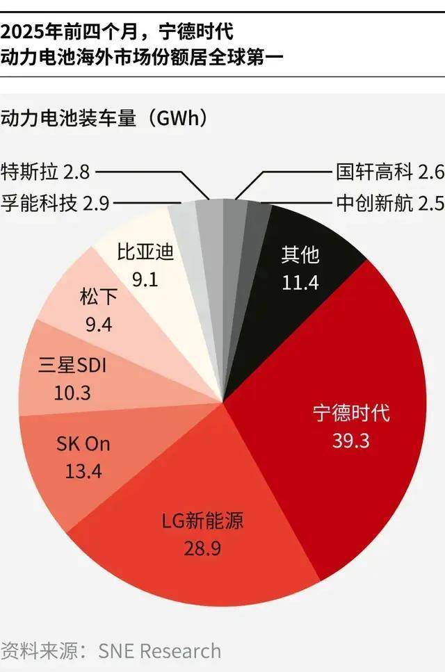作为全球领先的锂电池企业,宁德时代的产品包括动力电池和储能电池。据SNE Research数据显示,在储能领域,宁德时代连续4年储能电池出货量排名全球第一,2024年全球市占率为36.5%;在动力电池领域,宁德时代连续8年装机量排名全球第一;2025年上半年,宁德时代继续霸榜动力电池市场全球第一。