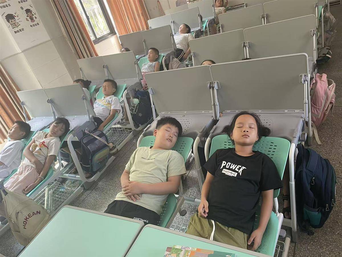 武穴市东方红小学地处城东,是去年新建成的一所现代化学校,孩子中午接送、午休成了不少家长的一大难题。学校党委书记袁晓英说,在成为黄冈市首批躺睡试点学校之后,学校已采购550套躺式折叠课桌椅,实现一年级全员可躺,余下2000多套将于9月10日前全部配置到位,家长的揪心事迎刃而解。